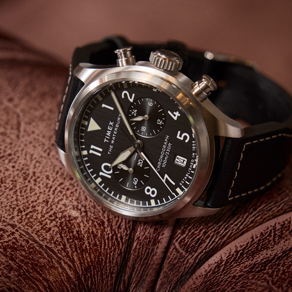 Venture higher with Timex Waterbury Ace collection. An elevated reimagining of the traditional pilot’s watch.