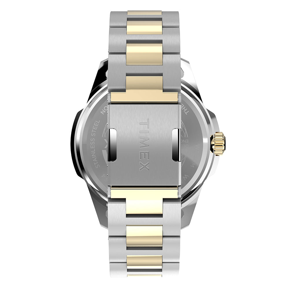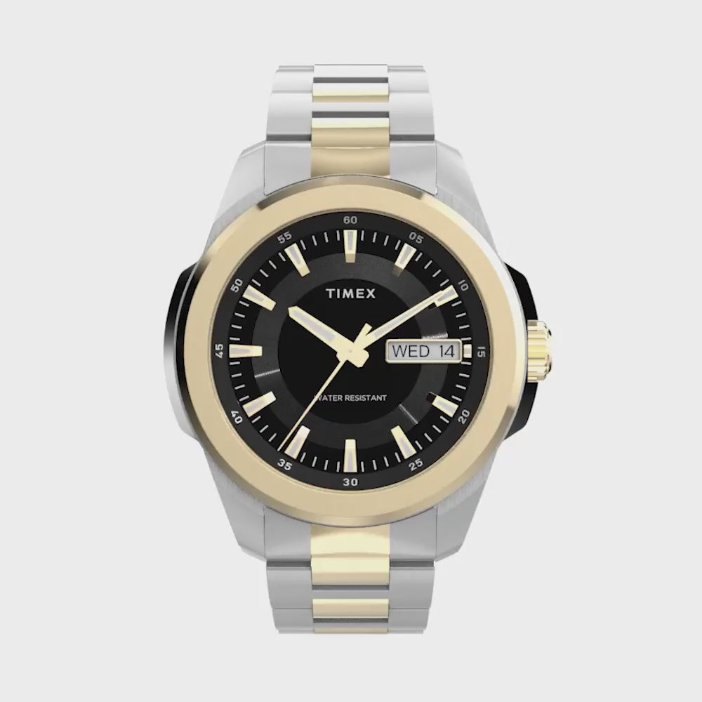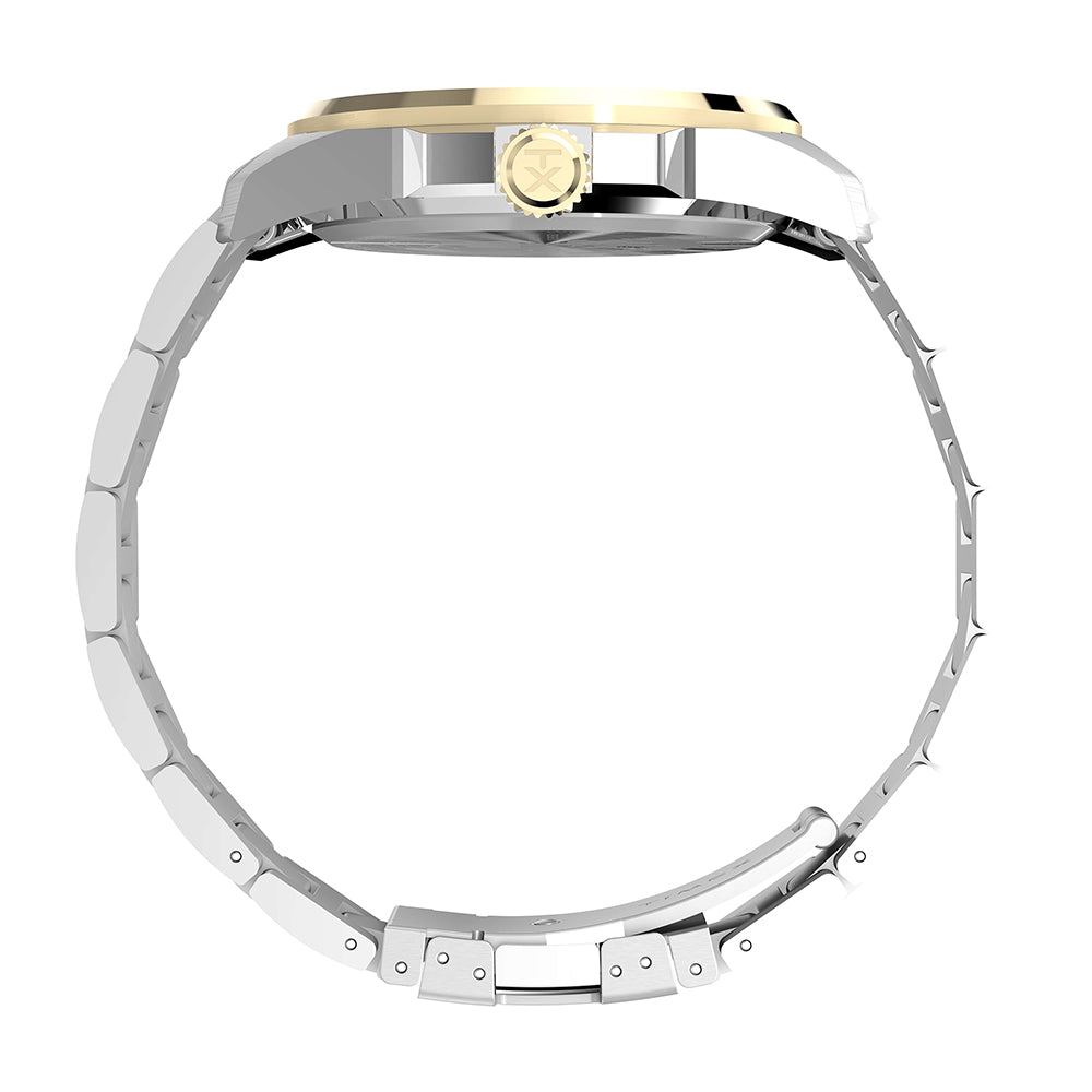 Our Essex just got a bold new upgrade. Now with an oversized 45mm case and newly redesigned round bezel both crafted of brushed and polished recycled stainless-steel, it brings a fresh edge to a handsome classic. The black or blue dial features a unique circular inlay and a day and date window, and we’ve enhanced it with luminant hands and markers for enhanced visibility at night. A matching brushed and polished stainless-steel bracelet completes the look, giving this timepiece a sleek, all-steel presentation.