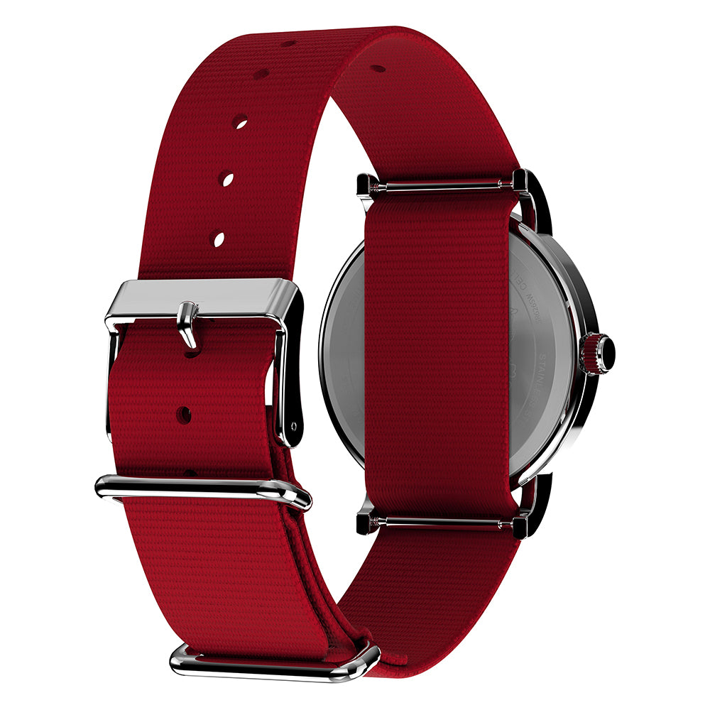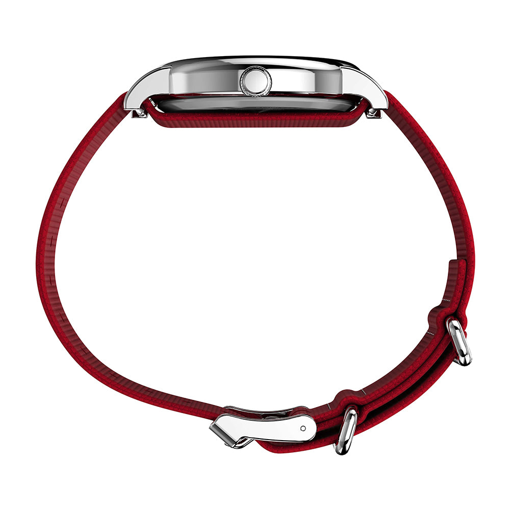 Designed for Peanuts fans of all ages, this playful iteration of our Timex Weekender captures your pals Snoopy and Woodstock on its clean white dial. We’ve paired its charming design with a sleek 38mm case and a red slip-thru fabric strap.