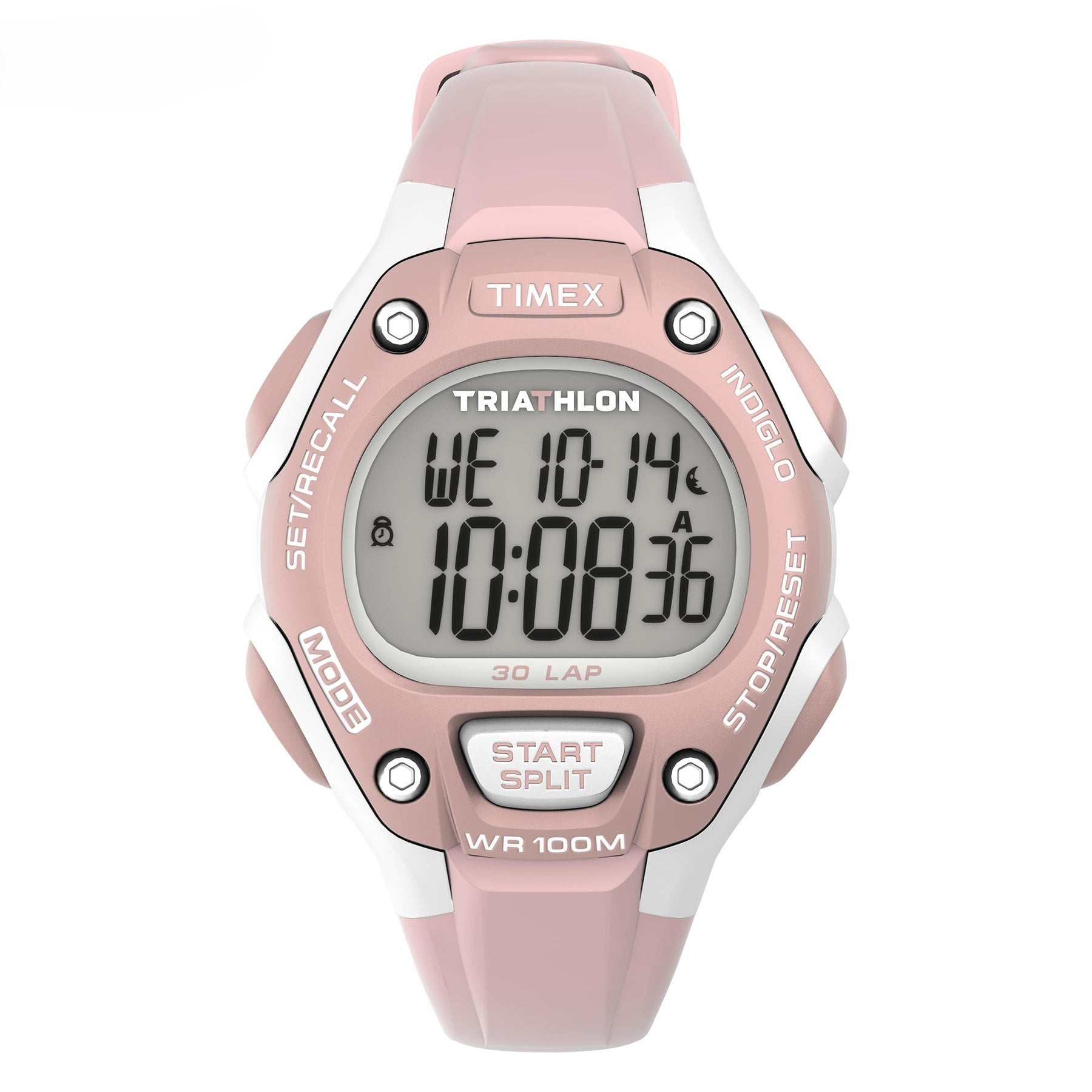 Our Triathlon Classic lap 30 is built to bring you to the finish line with a durable yet lightweight 34mm resin case. Its feature-rich functionality powers your performance with a 30-lap memory, chronograph, alarm, countdown timer, and our INDIGLO® backlight for nighttime visibility. The pink resin strap easily shifts between intense training sessions and more leisurely pursuits, with an athletic appearance that reflects your enduring spirit no matter where you wear it.