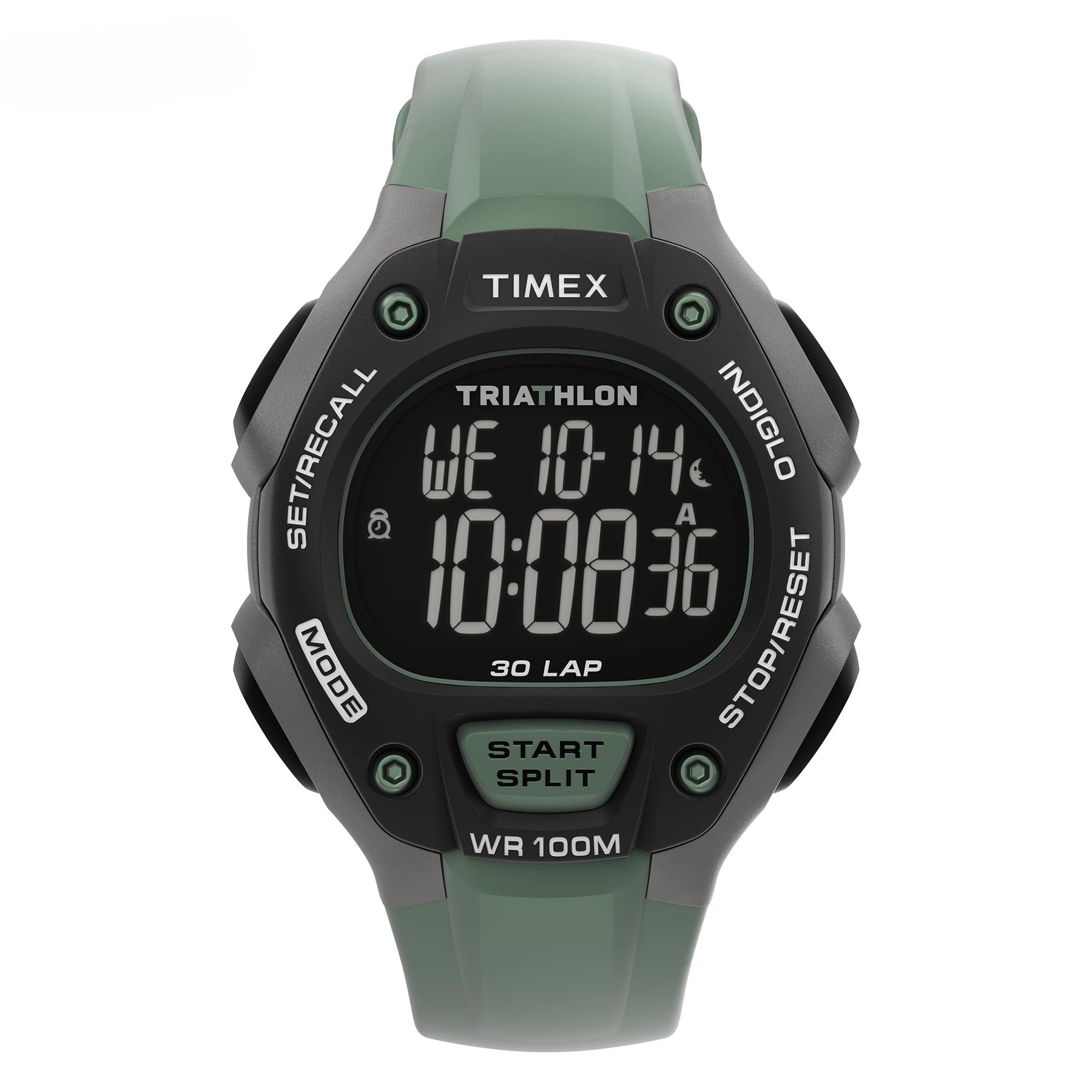 Our Triathlon Classic lap 30 is built to bring you to the finish line with a durable yet lightweight 38mm resin case. Its feature-rich functionality powers your performance with a 30-lap memory, chronograph, alarm, countdown timer, and our INDIGLO® backlight for nighttime visibility. The green resin strap easily shifts between intense training sessions and more leisurely pursuits, with an athletic appearance that reflects your enduring spirit no matter where you wear it.