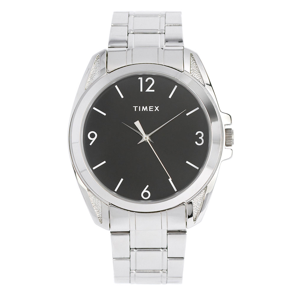 Make a statement with this 45mm silver-tone timepiece, showcasing a sleek black dial and three-hand functionality, perfect for both casual and formal occasions.